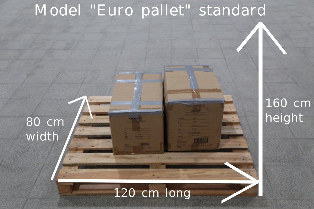 The base area of the pallet corresponds to the European pallet of 80 cm x 120 cm. The footprint is therefore 0,96 m².